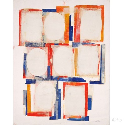 | KARL RÖDEL MONOTYPIE FARBE ROT GELB BLAU OVAL FLÄCHE RHYTHMUS UNIKAT VP: 2000€* | 14 Gebote