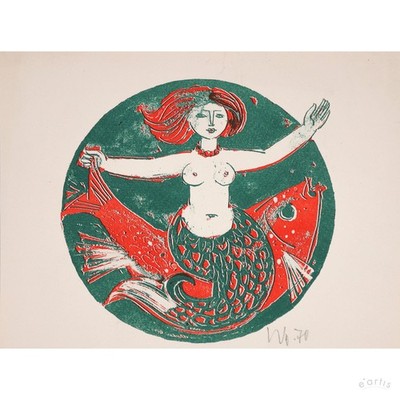 | WALTER WOMACKA LINOLSCHNITT NIXE SEEJUNGFRAU NEUJAHR 1971 SIGNIERT DDR VP: 100€* | 17 Gebote