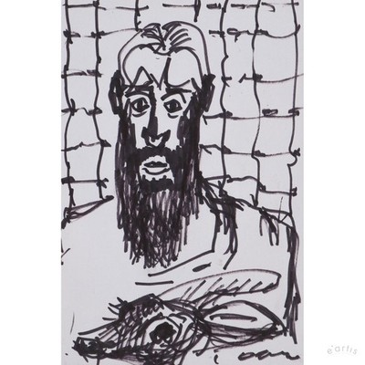 | LAMBERT MARIA WINTERSBERGER ZEICHNUNG MANN BART REH NETZ UNIKAT VP: 1800€* | 2 Gebote