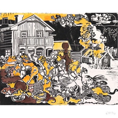 | JACQUES D. HYAN LINOLSCHNITT TRAUM HÜTTEN FIGÜRLICH SURREAL NACHLASS VP: 150€* | 1 Gebote