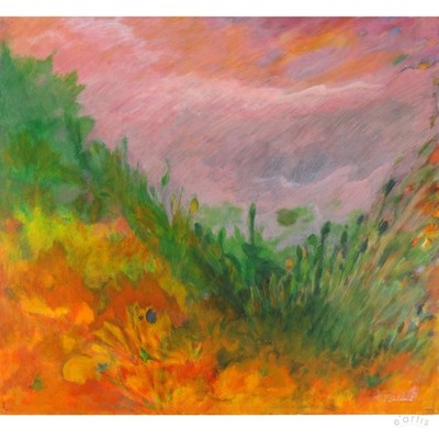| EVA SABBOUH GEMÄLDE LANDSCHAFT WIESE GRASS ORANGE VIOLETT DÜSSELDORF VP: 1600€* | 1 Gebote