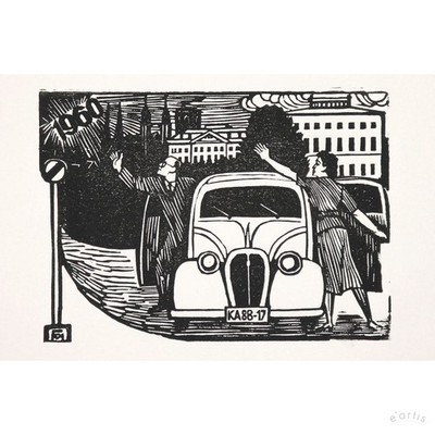 | CONRAD FELIXMÜLLER HOLZSCHNITT NEUJAHR 1960 UNIVERSITÄT HALLE AUTO VP: 100€* | 3 Gebote