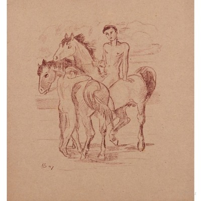 | ERNEMANN SANDER LITHOGRAFIE STRAND REITER MÄNNER AKT PFERDE JENA BONN VP: 130€* | 2 Gebote