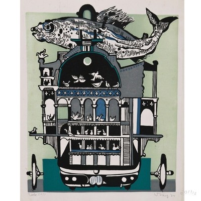 | WOLFGANG JÖRG FARBLINOLSCHNITT SCHIFF SARAH KIRSCH BERLINER HANDPRESSE VP: 150€* | 2 Gebote