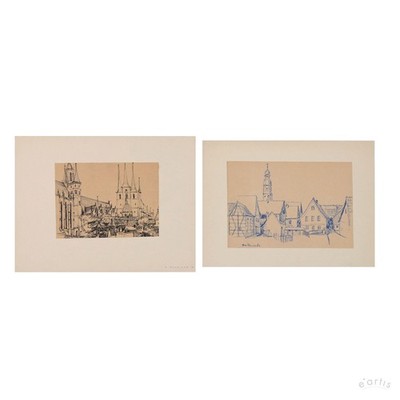 | KÜNSTLERZEICHNUNGEN 2x PANORAMMA SEITENRODA ERFURT NEUMANN 1964 DDR VP: 100€* | 0 Gebote