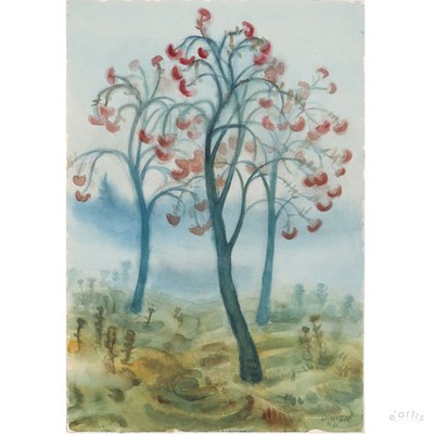 | JOHANNES DINTER AQUARELL BÄUME VOGELBEERE NEBEL WALD ZWICKAU UNIKAT VP: 500€* | 1 Gebote