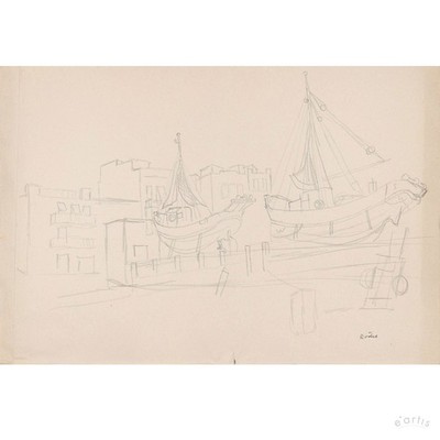 | KARL RÖDEL ZEICHNUNG SEGELBOOTE HAFEN REISESKIZZE NACHLASS POSTWAR VP: 530€* | 1 Gebote