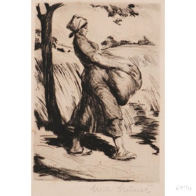 | ERICH GRUNER RADIERUNG BÄUERIN FELD LANDSCHAFT SIGNIERT LEIPZIG VP: 120€* | 1 Gebote