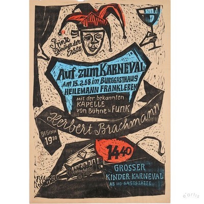 | HORST BÖGE GRAFIK HOLZSCHNITT FARBE PLAKAT KARNEVAL DDR 1958 SIGNIERT VP: 120€* | 2 Gebote