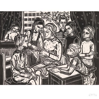| MARIA MORAWITZ HOLZSCHNITT KINDER SCHULKLASSE LEHRER DDR 1970 DRESDEN VP: 100€* | 1 Gebote