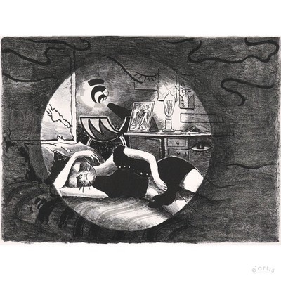 | HEINZ EBEL LITHOGRAFIE NÄCHTLICH UNTERWEGS NACHTEULE 1978 SIGNIERT VP: 100€* | 1 Gebote