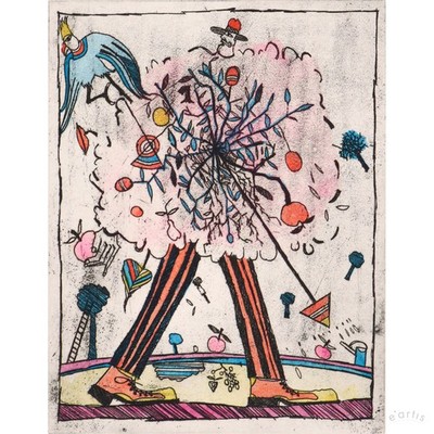 | BERND KASTENHOLZ RADIERUNG KOLORIERT LAUFBAUM VÖGEL FANTASIE PFALZ VP: 300€* | 1 Gebote
